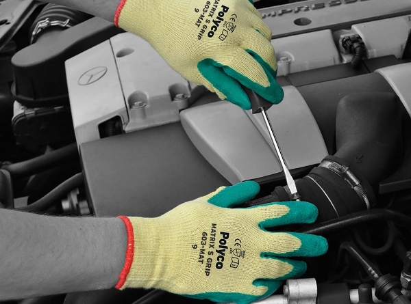 GUANTE MATRIX S GRIP POLI ALGODON LATEX RUGOSO VERDE TALLAS 08-10